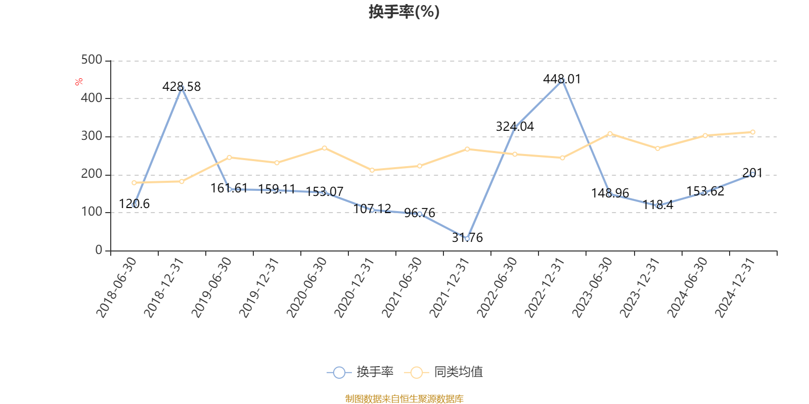 截至2024年12月31日,基金最近一年换手率约354.31%,持续2年低于同类均值。