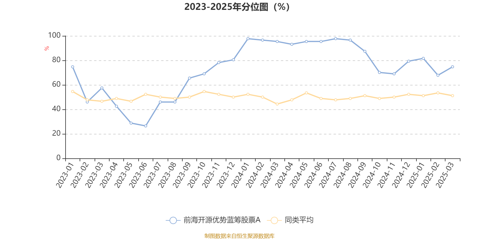 通过所选区间该基金净值增长率分位图,可以观察该基金与同类基金业绩比较情况。图为坐标原点到区间内某时点的净值增长率在同类基金中的分位数。